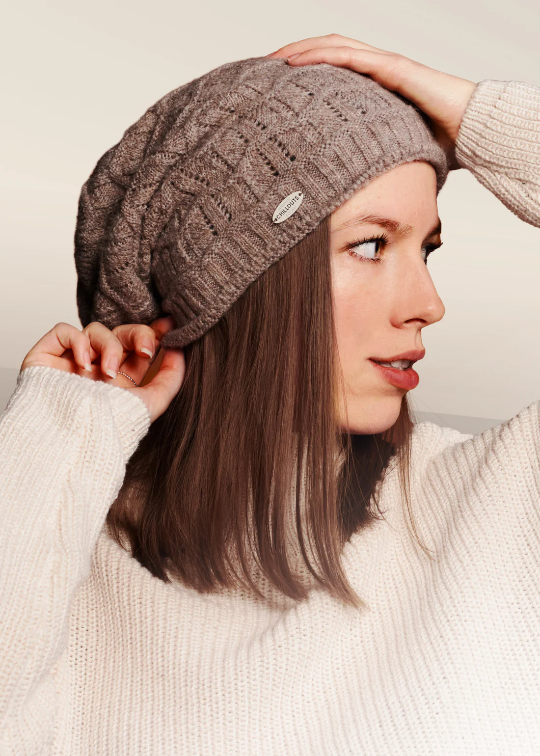 Maira Hat Taupe, wollen beanie.
